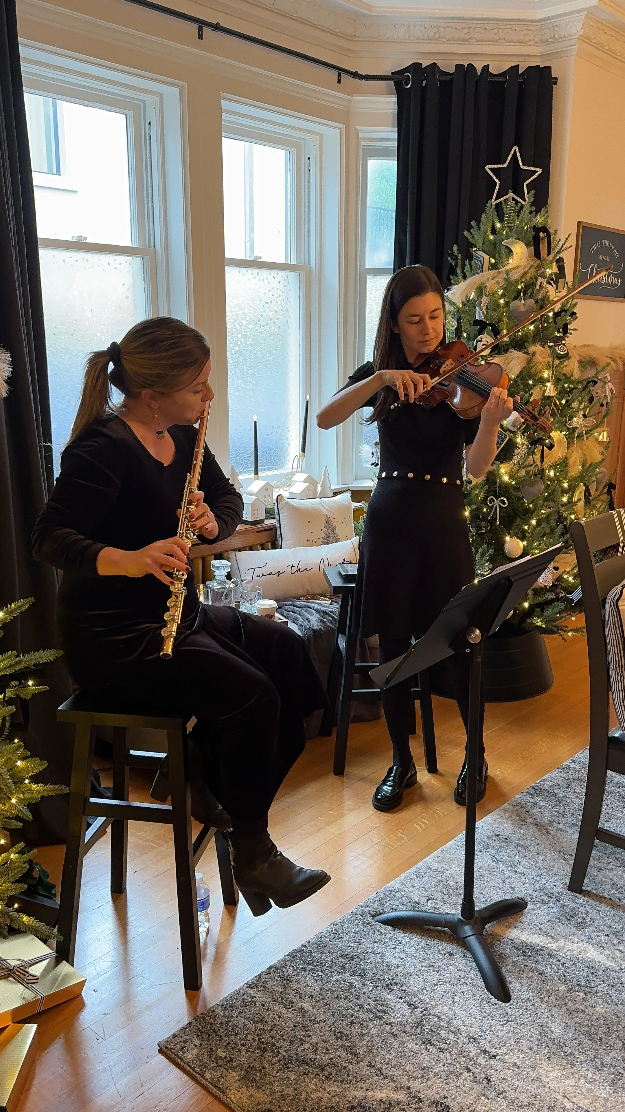 At the onset of the pandemic, she formed a flute and violin duo called Sonority Sisters with her TSO colleague, Kelly Zimba Lukić. The duo’s self-organized community performances and outreach in the city of Toronto has garnered significant press including dedicated articles and media appearances for/in The Toronto Star, Global News, Breakfast Television, CBC Toronto, CityNews Toronto, CTV Your Morning, and BlogTO.